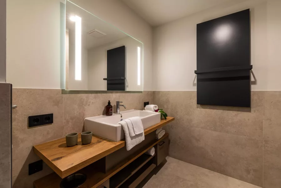 Bäder spielen eine zentrale Rolle im Gesamteindruck eines Hotels und tragen maßgeblich zum Komfort und Wohlbefinden der Gäste bei. Die Gestaltung und Herstellung der Möbel für das Bad übernehmen wir selbst, während unsere langjährigen Partner die Ausstattung mit Armaturen und technischen Elementen übernehmen. Durch diese enge und langfristige Zusammenarbeit gewährleisten wir, dass Design und Funktionalität in perfekter Harmonie umgesetzt werden.